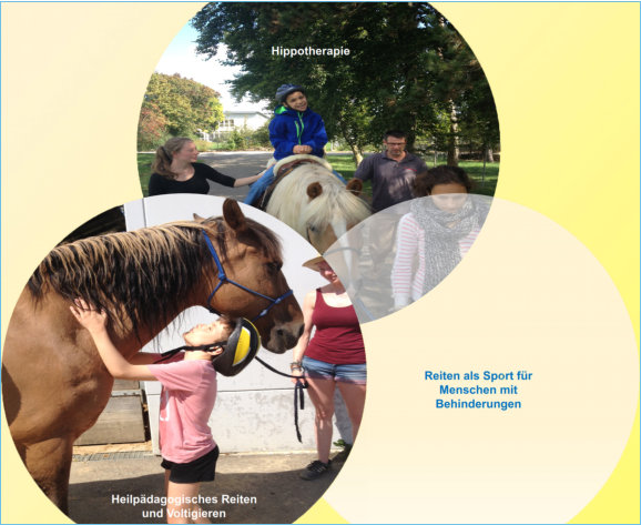 Hippotherapie, das heilpädagogische Reiten und Voltigieren sowie